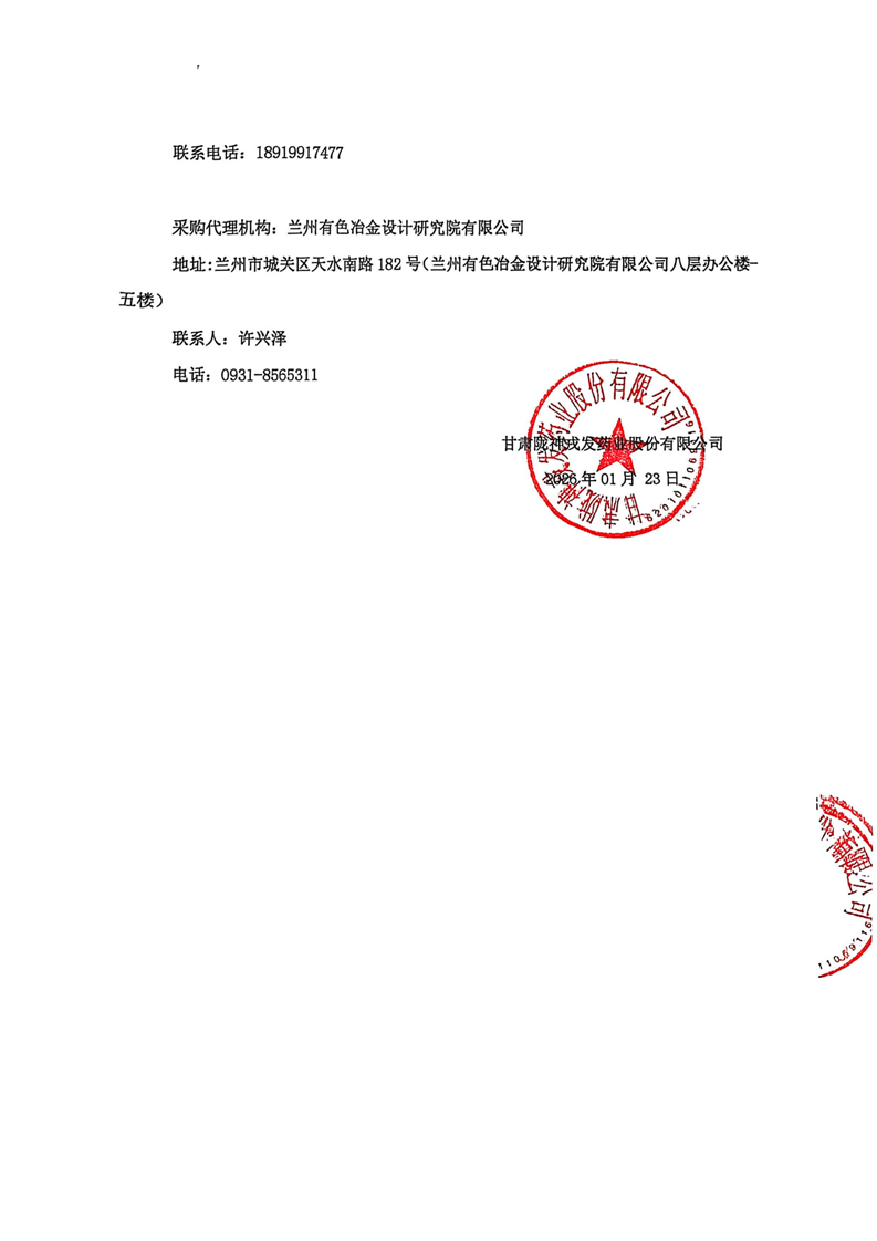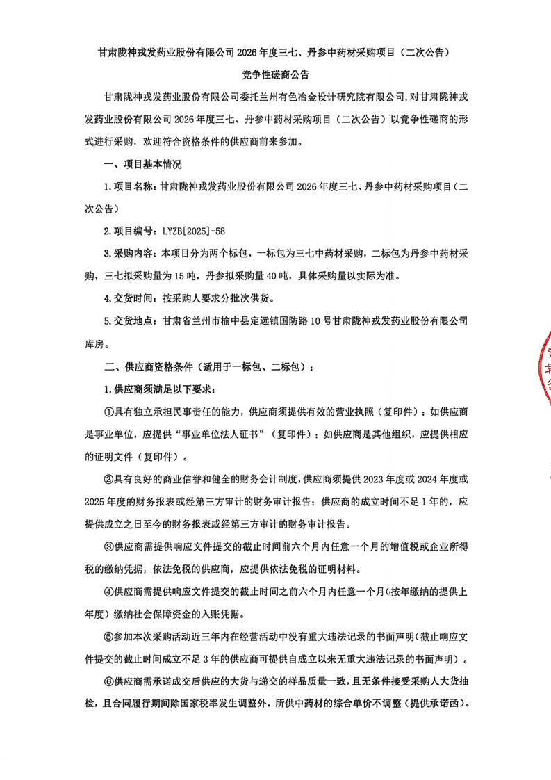 甘肅隴神戎發(fā)藥業(yè)股份有限公司2026年度三七、丹參中藥材采購項目(二次公告)競爭性磋商公告