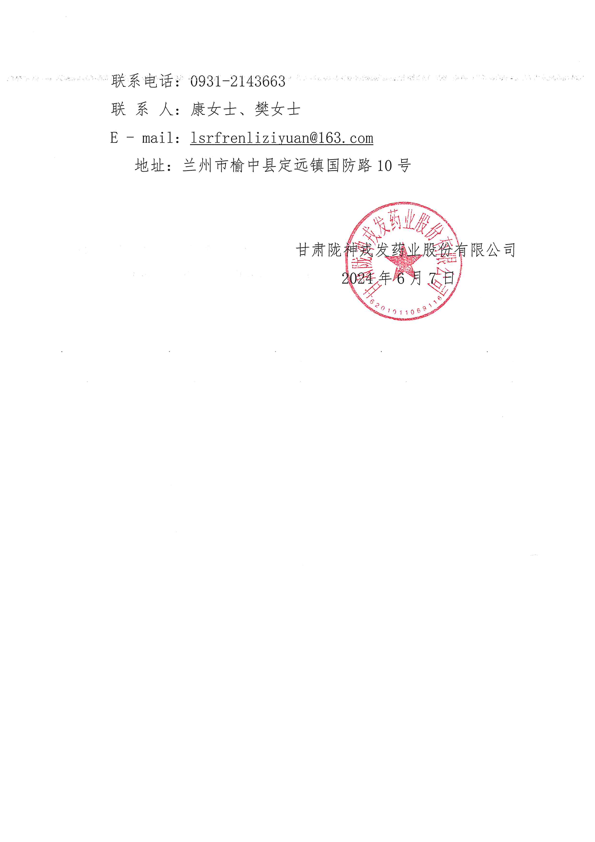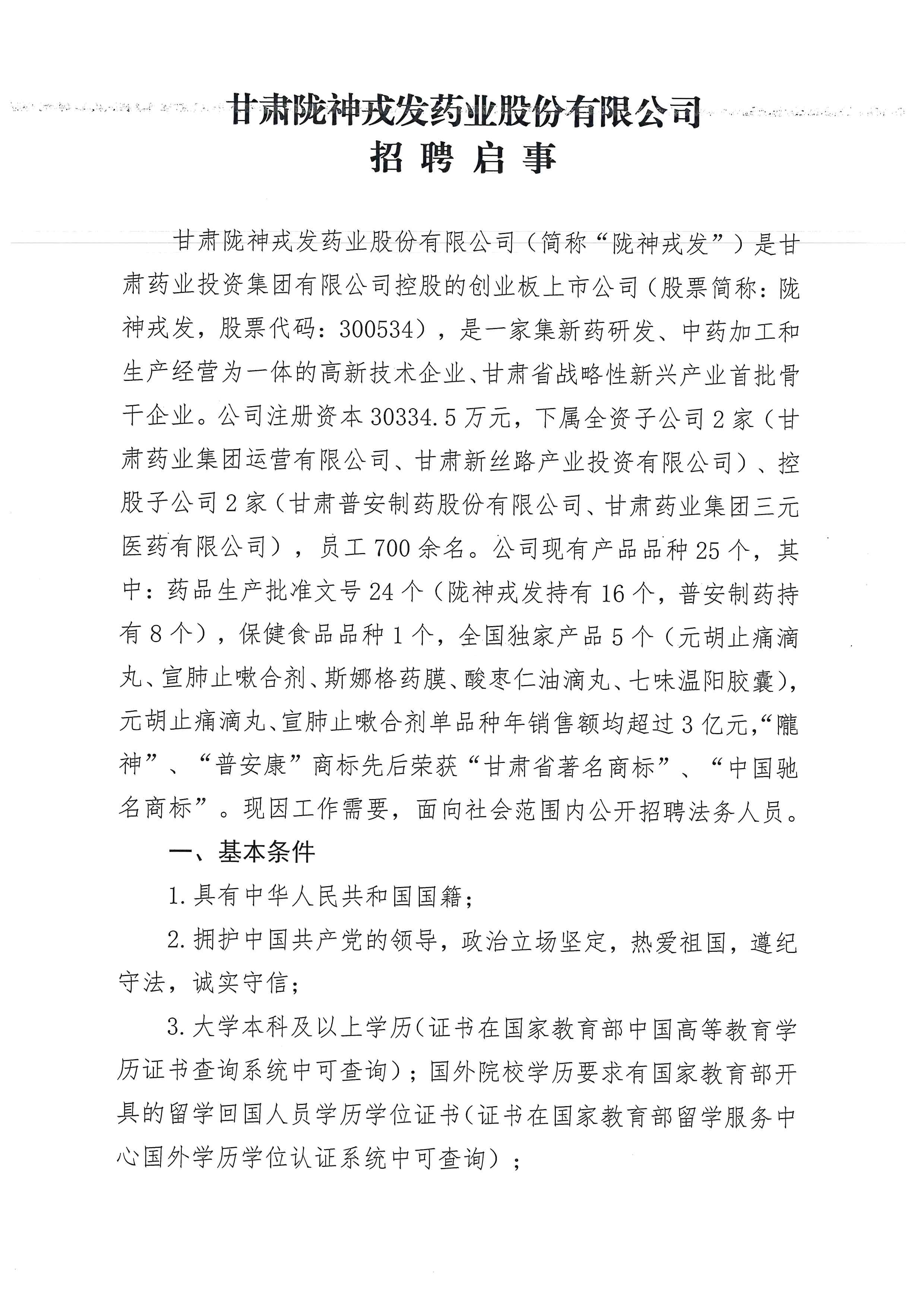 甘肅隴神戎發(fā)藥業(yè)股份有限公司招聘啟事